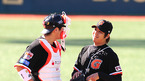 '2008 삼성 PAVV 프로야구 준플레이오프' 삼성 라이온즈와 롯데 자이언츠의 3차전이 11일 대구구장에서 벌어졌다. 롯데 선발 장원준이 1회말 1사 주자 만루 삼성 박석민에게 볼넷으로 1실점하자 강민호 포수와 아로요 코치가 나와서 얘기를 나누고 있다./대구=민경훈 기자rumi@osen.co.kr [Copyright ⓒ 한국...
