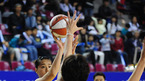 '2008-2009 KB국민은행 여자프로농구' 용인 삼성생명과 안산 신한은행의 경기가 13일 경기도 용인실내체육관에서 열렸다. 4쿼터 삼성생명 홍보람이 뒤로 점프하며 슛을 쏘고 있다./용인=민경훈 기자 rumi@osen.co.kr [Copyright ⓒ 한국 최고의 스포츠 엔터테인먼트 전문 미디어...