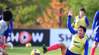 오는 15일 서울 월드컵경기장서 벌어질 UAE와 2010 남아공월드컵 아시아 최종예선 2차전을 앞두고 허정무 감독이 이끄는 대표팀이 13일 오후 파주 NFC에서 본격적인 전술훈련을 가졌다. 두팀으로 나누어 한 경기에서 신영록이 크로스에 발을 뻗었지만 미치지 못하고 있다./파주=손용호 기자spjj@osen.co.kr [Copyright ⓒ 한국...