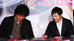 옴니버스 형식의 영화 '도쿄!' 기자배급 시사회가 15일 오후 서울 용산 CGV에서 열렸다. 이 자리에는 '흔들리는 도쿄'편을 제작한 봉준호 감독과 남자 주연배우 카가와 테루유키가 참석했다. 기자회견 중 봉준호가 귓속말을 하는 듯한 포즈를 취하고 있다./민경훈기자 rumi@osen.co.kr [Copyright ⓒ 한국...