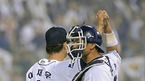 '2008 삼성 PAVV 프로야구 플레이오프' 두산 베어스와 삼성 라이온즈의 1차전이 16일 잠실구장에서 벌어졌다. 8-4로 승리를 거둔 두산 이재우와 채상병이 승리의 기쁨을 나누고 있다./잠실=윤민호 기자 ymh@osen.co.kr [Copyright ⓒ 한국 최고의 스포츠 엔터테인먼트 전문 미디어...