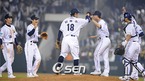 '2008 삼성 PAVV 프로야구 플레이오프' 두산 베어스와 삼성 라이온즈의 1차전이 16일 잠실구장에서 벌어졌다. 8-4 역전 승리를 거둔 두산 선수들이 마운드에서 승리의 기쁨을 나누고 있다./잠실=윤민호 기자 ymh@osen.co.kr [Copyright ⓒ 한국 최고의 스포츠 엔터테인먼트 전문 미디어...