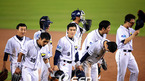 '2008 삼성 PAVV 프로야구 플레이오프' 두산 베어스와 삼성 라이온즈의 1차전이 16일 잠실구장에서 벌어졌다. 두산이 8-4로 1차전 역전 승리를 했다. 삼성 양준혁이 아쉬운 표정으로 그라운드를 내려 오고 있다./잠실=윤민호 기자 ymh@osen.co.kr [Copyright ⓒ 한국 최고의 스포츠 엔터테인먼트 전문 미디어...