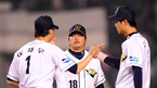 '2008 삼성 PAVV 프로야구 플레이오프' 두산 베어스와 삼성 라이온즈의 1차전이 16일 잠실구장에서 벌어졌다. 8-4 승리를 거둔 두산 선수들이 기쁨을 나누고 있다./잠실=윤민호 기자 ymh@osen.co.kr [Copyright ⓒ 한국 최고의 스포츠 엔터테인먼트 전문 미디어 OSEN(www.osen.co.kr) 제보및...