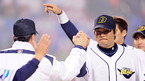 '2008 삼성 PAVV 프로야구' 두산베어스와 삼성 라이온즈 플레이오프 1차전 경기가 16일 잠실야구장에서 열렸다. 두산이 8-4 역전 승리를 거두며 1차전을 승리로 이끌었다. 경기 종료후 역전 희생타를 날린 김동주가 김경문 감독과 하이파이브를 하고 있다./잠실=김영민 기자ajyoung@osen.co.kr [Copyright ⓒ...