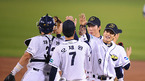 '2008 삼성 PAVV 프로야구' 플레이오프 두산 베어스와 삼성 라이온즈의 경기가 16일 잠실 야구장에서 벌어져 두산이 8-4로 승리 첫 승을 거두었다. 두산 선수들이 마운드에 모여 승리의 기쁨을 나누고 있다./잠실=손용호 기자spjj@osen.co.kr [Copyright ⓒ 한국 최고의 스포츠 엔터테인먼트 전문 미디어...