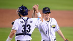 '2008 삼성 PAVV 프로야구' 두산베어스와 삼성 라이온즈 플레이오프 1차전 경기가 16일 잠실야구장에서 열렸다. 두산이 8-4 역전 승리를 거두며 1차전을 승리로 이끌었다. 경기 종료후 마무리 이재우와 채상병 포수가 승리의 하이파이브를 하고 있다./잠실=김영민 기자ajyoung@osen.co.kr [Copyright ⓒ 한국...