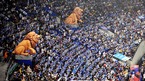 '2008 삼성 PAVV 프로야구 플레이오프' 두산 베어스와 삼성 라이온즈의 1차전이 16일 잠실구장에서 벌어졌다. 경기장을 찾은 삼성야구팬들이 대형 깃발을 흔들며 응원 하고 있다./잠실=윤민호 기자 ymh@osen.co.kr [Copyright ⓒ 한국 최고의 스포츠 엔터테인먼트 전문 미디어...