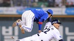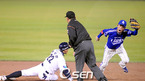 '2008 삼성 PAVV 프로야구' 플레이오프2차전 두산 베어스와 삼성 라이온즈의 경기가 17일 잠실 야구장에서 벌어졌다. 4회말 2사 1루 두산 홍성흔이 2루도루를 시도했지만 아웃되고 있다./잠실=손용호 기자spjj@osen.co.kr [Copyright ⓒ 한국 최고의 스포츠 엔터테인먼트 전문 미디어...