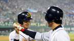 '2008 삼성 PAVV 프로야구' 두산베어스와 삼성 라이온즈 플레이오프 2차전 경기가 17일 잠실야구장에서 열렸다. 3회말 1사 3루 고영민 희생 내야땅볼때 3루 주자 오재원 득점을 올리며 고영민의 축하를 받고 있다./잠실=김영민 기자ajyoung@osen.co.kr [Copyright ⓒ 한국 최고의 스포츠 엔터테인먼트 전문...