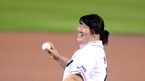 '2008 삼성 PAVV 프로야구' 플레이오프2차전 두산 베어스와 삼성 라이온즈의 경기가 17일 잠실 야구장에서 벌어졌다. 베이징 올림픽 역도 금메달 리스트 장미란이 힘차게 시구를 하고 있다./잠실=손용호 기자spjj@osen.co.kr [Copyright ⓒ 한국 최고의 스포츠 엔터테인먼트 전문 미디어...