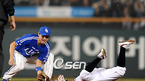 '2008 삼성 PAVV 프로야구' 두산베어스와 삼성 라이온즈 플레이오프 2차전 경기가 17일 잠실야구장에서 열렸다. 1회말 1사 1루 두산 고영민 타석 때 두산 이종욱 2루 도루에 성공하고 있다./잠실=윤민호 기자 ymh@osen.co.kr [Copyright ⓒ 한국 최고의 스포츠 엔터테인먼트 전문 미디어...