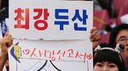 2008 삼성 PAVV 프로야구' 플레이오프 두산 베어스와 삼성 라이온즈의 경기가 17일 잠실 야구장에서 벌어졌다. 두산 치어리더들이 '최강 두산'을 외치며 응원을 펼치고 있다./잠실=민경훈 기자rumi@osen.co.kr [Copyright ⓒ 한국 최고의 스포츠 엔터테인먼트 전문 미디어...