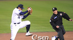 '2008 삼성 PAVV 프로야구' 두산베어스와 삼성 라이온즈 플레이오프 2차전 경기가 17일 잠실야구장에서 열렸다. 7회말 삼성 조계현 투수코치가 한 타자 상대로 두번 연속 마운드에 오르려 하자 강광회 구심이 저지시키고 있다./잠실=김영민 기자ajyoung@osen.co.kr [Copyright ⓒ 한국 최고의 스포츠 엔터테인먼트...
