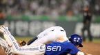 '2008 삼성 PAVV 프로야구' 두산베어스와 삼성 라이온즈 플레이오프 2차전 경기가 17일 잠실야구장에서 열렸다. 9회초 선두타자 박한이 2-3루간 깊숙한 내야땅볼을 때리고 1루에 헤드퍼스트 슬라이딩을 하였으나 아웃 처리 되고 있다./잠실=김영민 기자ajyoung@osen.co.kr [Copyright ⓒ 한국 최고의 스포츠...