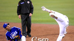 '2008 삼성 PAVV 프로야구' 두산베어스와 삼성 라이온즈 플레이오프 2차전 경기가 17일 잠실야구장에서 열렸다. 9회말 무사 1루 채상병 보내기 번트때 1루 주자 이대수 2루에서 포스아웃 처리 되고 있다./잠실=김영민 기자ajyoung@osen.co.kr [Copyright ⓒ 한국 최고의 스포츠 엔터테인먼트 전문 미디어...