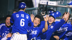 '2008 삼성 PAVV 프로야구' 두산베어스와 삼성 라이온즈 플레이오프 2차전 경기가 17일 잠실야구장에서 열렸다. 7회초 2사 3루 최형우의 적시타때 3루 주자 삼성 양준혁 역전 득점을 올리며 더그아웃의 환영을 받고 있다./잠실=김영민 기자ajyoung@osen.co.kr [Copyright ⓒ 한국 최고의 스포츠 엔터테인먼트...