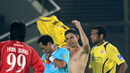 '삼성 하우젠 K-리그 2008' 성남 일화와 부산 아이파크의 경기가 18일일 탄천종합운동장에서 벌어졌다. 후반 성남 모따가 부산 홍성요에게 파울, 두 번째 옐로카드를 받아 경고 누적으로 퇴장당한 뒤 관중석으로 다가가 유니폼을 던져주고 있다./성남=손용호 기자spjj@osen.co.kr [Copyright ⓒ 한국 최고의 스포츠...