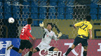 '삼성 하우젠 K-리그 2008' 성남 일화와 부산 아이파크 경기가 18일 저녁 성남 탄천종합운동장에서 벌어졌다. 후반 부산 최현 골키퍼가 성남 한동원의 헤딩슛을 잡아내고 있다./성남=김영민 기자ajyoung@osen.co.kr [Copyright ⓒ 한국 최고의 스포츠 엔터테인먼트 전문 미디어 OSEN(www.osen.co.kr)...