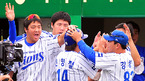 '2008 삼성 PAVV 프로야구' 두산베어스와 삼성 라이온즈 플레이오프 3차전 경기가 19일 대구야구장에서 열렸다. 3회말 2사 1,2루 에서 선취 2타점 적시타를 날린 박석민이 공수교대때 신명철로 부터 축하를 받고 있다./대구=김영민 기자ajyoung@osen.co.kr [Copyright ⓒ 한국 최고의 스포츠 엔터테인먼트...