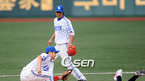 '2008 삼성 PAVV 프로야구' 두산베어스와 삼성 라이온즈 플레이오프 3차전 경기가 19일 대구야구장에서 열렸다. 1회초 무사 1루 오재원 타석때 1루 주자 두산 이종욱 2루 도루 아웃되고 있다./대구=김영민 기자ajyoung@osen.co.kr [Copyright ⓒ 한국 최고의 스포츠 엔터테인먼트 전문 미디어...