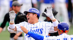 '2008 삼성 PAVV 프로야구' 두산베어스와 삼성 라이온즈 플레이오프 3차전 경기가 19일 대구야구장에서 열렸다. 6회말 1사 2,3루 삼성 최형우 우월 스리런 홈런을 날리고 홈인 더그아웃 동료들의 환영을 받고 있다./대구=김영민 기자ajyoung@osen.co.kr [Copyright ⓒ 한국 최고의 스포츠 엔터테인먼트 전문...