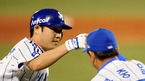 '2008 삼성 PAVV 프로야구' 두산베어스와 삼성 라이온즈 플레이오프 4차전 경기가 20일 대구야구장에서 열렸다. 2회말 1사 삼성 박진만 좌월 솔로 홈런을 날리고 3루 유중일 코치의 환영을 받으며 홈인하고 있다./대구=김영민 기자ajyoung@osen.co.kr [Copyright ⓒ 한국 최고의 스포츠 엔터테인먼트 전문...