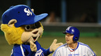 '2008 삼성 PAVV 프로야구' 두산베어스와 삼성 라이온즈 플레이오프 4차전 경기가 20일 대구야구장에서 열렸다. 2회말 1사 삼성 박진만 좌월 솔로홈런을 날리고 마스코트의 환영을 받으며 홈인하고 있다./대구=김영민 기자ajyoung@osen.co.kr [Copyright ⓒ 한국 최고의 스포츠 엔터테인먼트 전문 미디어...