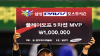'2008 삼성 PAVV 프로야구' 플레이오프5차전 삼성 라이온즈와 두산 베어스의 경기가 21일 대구야구장에서 벌어져 두산이 김현수와 김동주의 홈런을 앞세워 6-4로 승리하며 한국시리즈 진출의 유리한 고지를 점령했다. 5차전 MVP가 된 김현수가 팬들에게 인사를 하고 있다./대구=손용호 기자spjj@osen.co.kr...