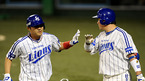 '2008 삼성 PAVV 프로야구' 플레이오프5차전 삼성 라이온즈와 두산 베어스의 경기가 21일 대구야구장에서 벌어졌다. 2회말 1사 진갑용이 좌측 담장을 넘어가는 동점 솔로홈런을 치고 앞서 홈런을 친 박진만의 환영을 받고 있다./대구=손용호 기자spjj@osen.co.kr [Copyright ⓒ 한국 최고의 스포츠 엔터테인먼트...