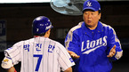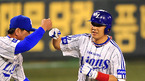 '2008 삼성 PAVV 프로야구' 플레이오프5차전 삼성 라이온즈와 두산 베어스의 경기가 21일 대구야구장에서 벌어졌다. 2회말 1사 박진만이 좌측 담장을 넘어가는 솔로홈런을 치고 선동렬 감독의 환영을 받고 있다./대구=손용호 기자spjj@osen.co.kr [Copyright ⓒ 한국 최고의 스포츠 엔터테인먼트 전문 미디어...