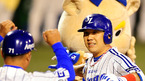 '2008 삼성 PAVV 프로야구' 두산베어스와 삼성 라이온즈 플레이오프 5차전 경기가 21일 대구야구장에서 열렸다. 3회초 2사 두산 김현수 우월 솔로 홈런을 닐리고 홈인 더그아웃의 환영을 받고 있다./대구=김영민 기자ajyoung@osen.co.kr [Copyright ⓒ 한국 최고의 스포츠 엔터테인먼트 전문 미디어...