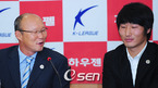 '삼성 하우젠컵 2008' 결승전 공식 기자회견이 21일 오전 서울 종로구 신문로 축구회관에서 열렸다. 이 자리에는 수원 삼성의 차범근 감독과 송종국, 전남 드래곤즈의 박항서 감독과 염동균이 참석했다. 기자회견 중 박항서 감독과 염동균이 비슷한 표정을 짓고 있다./민경훈 기자 rumi@osen.co.kr [Copyright ⓒ 한국...