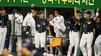 '2008 삼성 PAVV 프로야구' 두산베어스와 삼성 라이온즈 플레이오프 5차전 경기가 21일 대구야구장에서 열렸다. 두산이 김동주 투런홈런과 김현수의 솔로홈런 11안타에 힘입어 6-4 승리를 거두며 한국시리즈 진출 1승을 남겨 두었다. 경기 종료후 선수들이 승리의 기쁨을 나누고 있다./대구=김영민 기자ajyoung@osen.co.kr...
