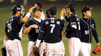 '2008 삼성 PAVV 프로야구' 플레이오프5차전 삼성 라이온즈와 두산 베어스의 경기가 21일 대구야구장에서 벌어졌다. 7회말 2사 만루 진갑용의 안타성 타구를 두산 중견수 이종욱이 다이빙 캐치 위기를 넘기자 이재우 투수가 반갑게 맞이하고 있다./대구=손용호 기자spjj@osen.co.kr [Copyright ⓒ 한국 최고의...