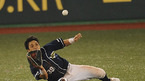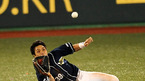 '2008 삼성 PAVV 프로야구' 두산베어스와 삼성 라이온즈 플레이오프 5차전 경기가 21일 대구야구장에서 열렸다. 7회말 2사 만루 삼성 진갑용의 중견수앞 떨어지는 안타성 타구를 두산 이종욱 중견수가 다이빙캐치를 하며 아웃 처리 시키고 있다./대구=김영민 기자ajyoung@osen.co.kr [Copyright ⓒ 한국 최고의...