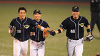 '2008 삼성 PAVV 프로야구' 플레이오프5차전 삼성 라이온즈와 두산 베어스의 경기가 21일 대구야구장에서 벌어졌다. 7회말 2사 만루 진갑용의 안타성 타구를 두산 중견수 이종욱이 다이빙 캐치 위기를 넘기고 밝은표정으로 덕아웃으로 향하고 있다./대구=손용호 기자spjj@osen.co.kr [Copyright ⓒ 한국 최고의...