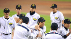 '2008 삼성 PAVV 프로야구' 플레이오프6차전 두산 베어스와 삼성 라이온즈의 경기가 23일 잠실야구장에서 벌어져 두산이 5-2로 승리 시리즈 전적 4승2패로 한국시리즈에 진출했다. 김경문 감독이 선수들을 반갑게 맞이하고 있다./잠실=손용호 기자spjj@osen.co.kr [Copyright ⓒ 한국 최고의 스포츠...