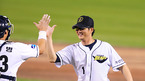 '2008 삼성 PAVV 프로야구' 플레이오프6차전 두산 베어스와 삼성 라이온즈의 경기가 23일 잠실야구장에서 벌어져 두산이 5-2로 승리 시리즈 전적 4승2패로 한국시리즈에 진출했다. 한국시리즈 진출이 확정되는 순간 이재우와 채상병이 하이파이브를 하고 있다./잠실=손용호 기자spjj@osen.co.kr [Copyright ⓒ...
