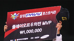 '2008 삼성 PAVV 프로야구' 두산베어스와 삼성 라이온즈 플레이오프 6차전 경기가 23일 잠실야구장에서 열렸다. 두산이 5-2 승리를 거두며 플레이오프 4승2패로 한국시리즈 진출을 따냈다. 경기 종료후 플레이오프 MVP 두산 이종욱이 시상식을 마친후 팬들에게 인사를 하고 있다./잠실=김영민 기자ajyoung@osen.co.kr...