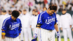 '2008 삼성 PAVV 프로야구' 플레이오프 6차전 두산 베어스와 삼성 라이온즈의 경기가 23일 잠실야구장에서 벌어졌다. 이 날 경기에서 두산은 5-2로 승리하며 시리즈 전적 4승 2패로 2년 연속 한국 시리즈 진출에 성공했다. 경기를 마치고 환호하는 두산 선수들을 뒤로하고 삼성 양준혁이 우울한 표정을 지으며 덕아웃으로 들어서고...