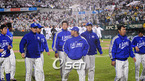 '2008 삼성 PAVV 프로야구' 플레이오프 6차전 두산 베어스와 삼성 라이온즈의 경기가 23일 잠실야구장에서 벌어졌다. 이 날 경기에서 두산은 5-2로 승리하며 시리즈 전적 4승 2패로 2년 연속 한국 시리즈 진출에 성공했다. 경기를 마치고 환호하는 두산 팬들을 향해 두산 선수들이 인사를 하고...
