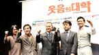 영화배우 황정민이 8년만에 꾸미는 연극무대인 연극 ‘웃음의 대학’(연출 이해제) 프레스콜이 24일 오후 서울 대학로 동숭아트센터 동숭홀에서 열렸다. ‘웃음의 대학’은 24일 저녁 초연해 내달 30일까지 이어지는 황정민-송영창의 2인극으로 일본작가 미타니 코우키의 작품이다. '웃음의 대학' 주요 관계자들(왼쪽부터 이해제 연출가, 조재현,...