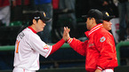 '2008 삼성 PAVV 프로야구' 한국시리즈 2차전 SK 와이번스와 두산 베어스의 경기가 27일 인천 문학구장에서 벌어졌다. 이 날 SK는 장단 9개의 안타를 집중시킨 끝에 5-2로 승리했다. 경기를 마치고 SK 김성근 감독과 마무리 정대현 투수가 하이파이브를 하고 있다. /문학=민경훈기자rumi@osen.co.kr...