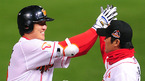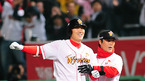 '2008 삼성 PAVV 프로야구' 한국시리즈2차전 SK 와이번스와 두산 베어스의 경기가 27일 인천 문학야구장에서 벌어졌다. 1회말 2사 1,3루 SK 이진영이 선제 적시타를 치고 좋아하고 있다./인천=손용호 기자spjj@osen.co.kr [Copyright ⓒ 한국 최고의 스포츠 엔터테인먼트 전문 미디어...