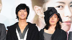영화 '서양골동양과자점 앤티크'(감독 민규동)의 기자시사회가 28일 코엑스 메가박스에서 주연배우 주지훈 김재욱 유아인 최지호 등이 참석한 가운데 열렸다. 이 영화는 일본 인기 만화 ‘서양골동양과자점’(요시나가 후미 著)을 영화화한 작품이다. 주지훈 김재욱이 블랙의 특이한 의상을 입고 포토타임을 갖고 있다./손용호...