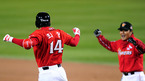 '2008 삼성 PAVV 프로야구' 한국시리즈 3차전 SK 와이번스와 두산 베어스 경기가 29일 잠실야구장에서 열렸다. 6회초 2사 1루 최정 중월 투런 홈런을 날리고 홈인 더그아웃의 환영을 받고 있다./잠실=김영민 기자ajyoung@osen.co.kr [Copyright ⓒ 한국 최고의 스포츠 엔터테인먼트 전문 미디어...