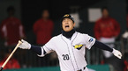 '2008 삼성 PAVV 프로야구' 한국시리즈3차전 두산 베어스와 SK 와이번스의 경기가 29일 잠실야구장에서 벌어졌다. 6회초 2사 1루 최정이 좌중간 담장을 넘어가는 투런홈런을 치고 환호하고 있다./잠실=손용호 기자spjj@osen.co.kr [Copyright ⓒ 한국 최고의 스포츠 엔터테인먼트 전문 미디어...