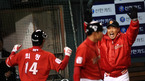 '2008 삼성 PAVV 프로야구' 한국시리즈3차전 두산 베어스와 SK 와이번스의 경기가 29일 잠실야구장에서 벌어졌다. 6회초 2사 1루 최정이 좌중간 담장을 넘어가는 투런홈런을 치고 환호하고 있다./잠실=손용호 기자spjj@osen.co.kr [Copyright ⓒ 한국 최고의 스포츠 엔터테인먼트 전문 미디어...