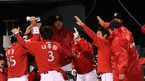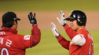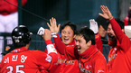'2008 삼성 PAVV 프로야구' 한국시리즈3차전 두산 베어스와 SK 와이번스의 경기가 29일 잠실야구장에서 벌어졌다. 4회초 1사 2루 2루타를 치고 나가 이재원의 적시타때 홈을 밟은 이진영을 동료 선수들이 반갑게 맞이하고 있다./잠실=손용호 기자spjj@osen.co.kr [Copyright ⓒ 한국 최고의 스포츠 엔터테인먼트...